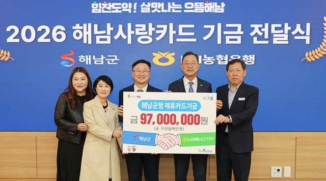 현조 지부장은“해남사랑카드 적립금 전달식은 해남군민들에게 받은 사랑을 되돌린다는 의미로 매년 추진하고 있다”며“기금 전달이 지역사회에 실질적인 도움이 되기를 기대하며, 앞으로도 금고 은행으로서 해남군과 협력하여 지역사회와 상생하는 금융기관의 역할을 충실히 수행하겠다”고 말했다.