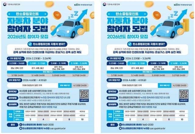 참여를 희망하는 시민은 모집 기간 자동차 탄소중립포인트제 누리집에서 신청하면 된다. 이후 차종 확인이 가능한 차량 전면 사진과 계기판 사진을 전송된 문자로 안내된 링크를 통해 제출해야 한다.