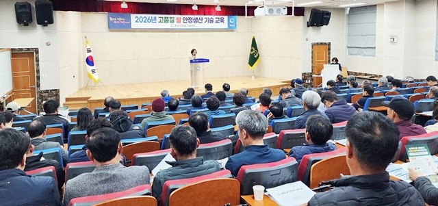 화순군(군수 구복규)은 9일 “지난 6일 농업기술센터 대강당에서 쌀 전업농 등 101명의 농업인이 참석한 가운데 ‘2026년 고품질 쌀 안정생산 기술교육’을 성황리에 마쳤다”고 밝혔다.