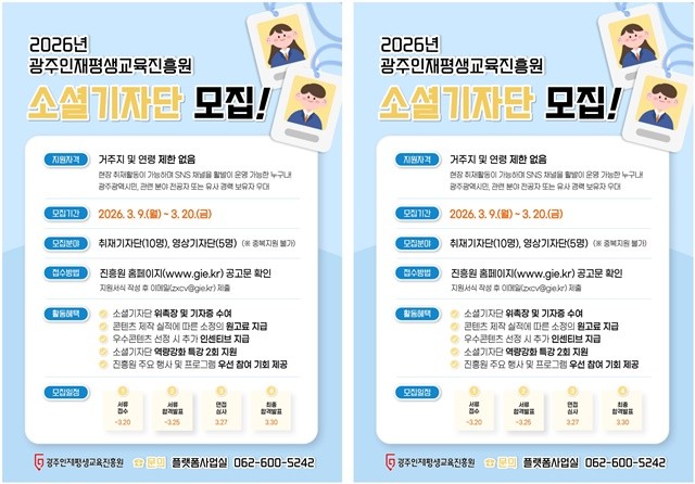광주인재평생교육진흥원, 2026 소셜기자단 모집