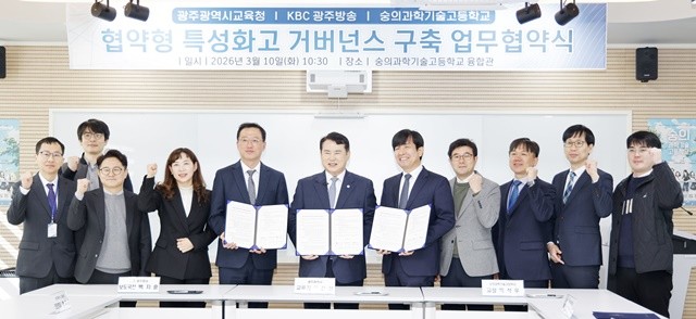 [위키트리 광주전남취재본부 노해섭 기자]광주시교육청(교육감 이정선)은 10일 숭의과학기술고등학교에서 KBC광주방송, 숭의과학기술고등학교와 함께 ‘협약형 특성화고 거버넌스 구축 업무협약’을 체결했다.