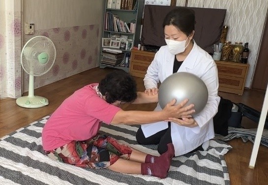 대상자의 신체 상태와 주거환경을 면밀히 고려해 낙상 예방을 위한 자가 운동 교육과 도구를 활용한 운동 방법, 자세 교정을 지도하고 있으며, 근력 강화와 관절 기능 유지에 도움이 되는 다양한 재활운동을 진행하고 있다.