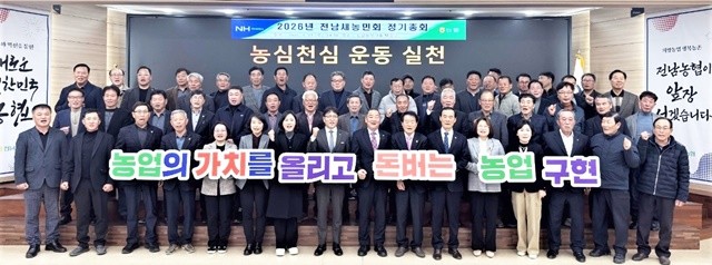 [위키트리 광주전남취재본부 노해섭 기자]농협전남본부(본부장 이광일)는 11일 전남본부 2층 대강당에서 (사)한국새농민 전라남도회 임원 및 대의원 등이 참석한 가운데 2026년 전남새농민회 정기총회를 개최했다. 이날 행사에는 농협전남본부 이광일 본부장, 전남새농민회 김성열 회장, 한국새농민중앙회 문재용 회장, 전라남도 농업정책과 김현미 과장 등이 참석했다.