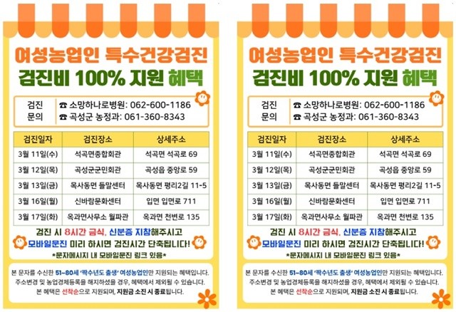 전남 곡성군, 여성농업인 특수건강검진 사업 추진