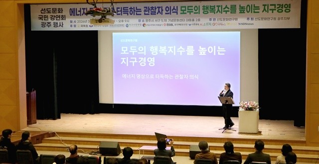 [위키트리 광주전남취재본부 노해섭 기자]사단법인 선도문화연구원 수선(水仙) 김세화 원장은 3월 12일 오후 7시 광주광역시 5·18기념문화센터 대동홀에서 전국 순회 강연회를 개최했다. 이날 강연회는 현장 참석이 어려운 시민들을 위해 선도문화연구원 유튜브 채널을 통해 실시간 생중계되며 온·오프라인으로 동시에 진행됐다.