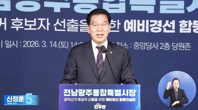 [위키트리 광주전남취재본부 노해섭 기자]더불어민주당은 제9회 전국동시지방선거를 앞두고 전남·광주 통합특별시장 후보 선출을 위한 예비경선 합동연설회를 열고 후보들의 비전과 정책을 공개했다.