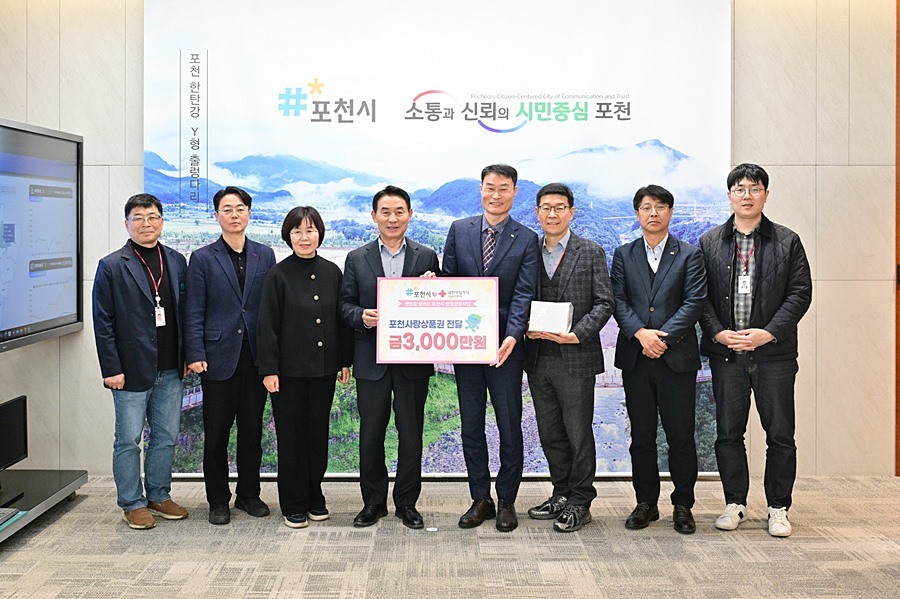 경기 포천시(시장 백영현)는 지난 16일 포천시장 집무실에서 시민들의 헌혈 참여를 장려하고 생명나눔 문화를 확산하기 위해 대한적십자사 서울동부혈액원에 포천사랑상품권을 전달했다.