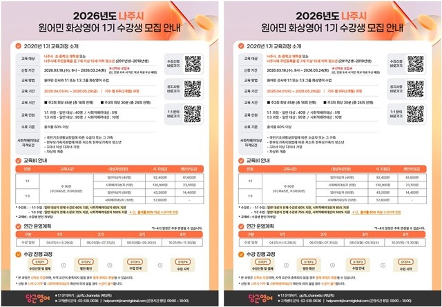 전남 나주시, 2026년 원어민 화상영어 1기 수강생 모집