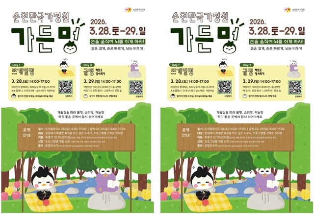 노관규 순천시장은 “디지털 시대에 역행하는 아날로그적 휴식이 오히려 가장 강력한 관광 상품이 될 수 있음을 증명할 것”이라며, “이번 가든멍을 신호탄 삼아 4월 초 스페이스허브의 ‘정원 봄꽃 피크닉’, 네덜란드 정원의 ‘튤립 페스티벌’ 등 압도적인 봄 관광 포트폴리오를 연속 가동해 순천의 체류형 관광을 극대화하겠다”고 강조했다.