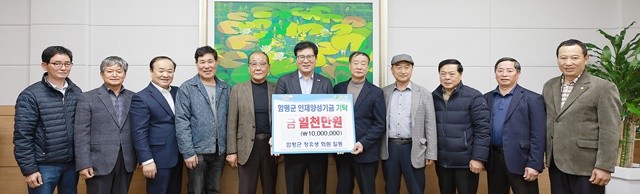 19일 함평군, 1957년 정유생 회원 일동으로부터 인재양성기금 1천만 원 수여 발표