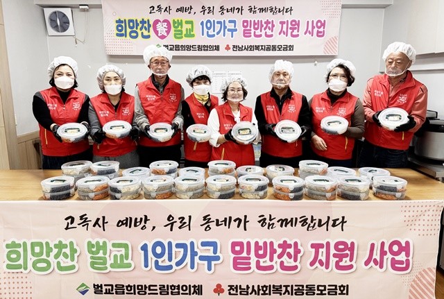[위키트리 광주전남취재본부 노해섭 기자] 보성군(군수 김철우)은 18일 벌교읍희망드림협의체(공동위원장 서진석, 이형진)가 건강 취약 1인 가구의 식생활 지원과 고독사 예방을 위해 ‘희망찬(饌) 벌교’ 밑반찬 지원사업을 시작했다고 밝혔다.