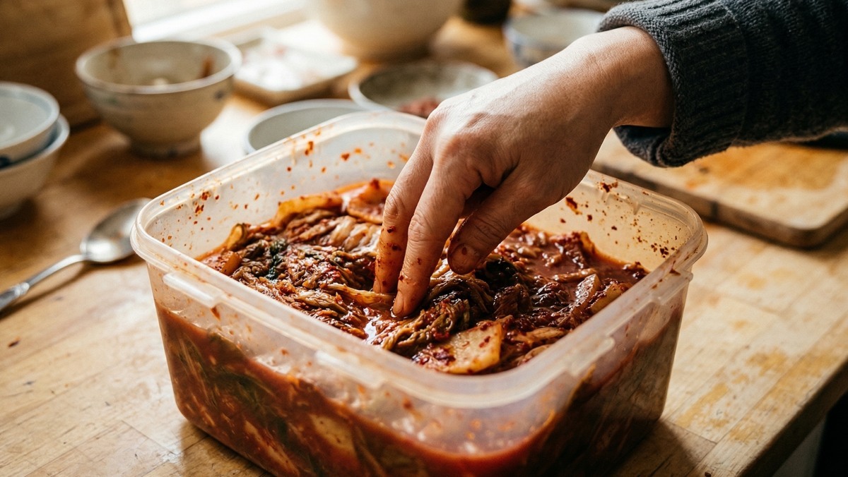 완성된 머위김치는 바로 먹어도 좋지만, 실온에서 반나절 정도 두었다가 냉장 보관하면 양념이 더 잘 배어든다. 시간이 지나면서 머위의 쌉싸름함과 밤의 은은한 단맛이 어우러져 깊은 맛을 낸다.