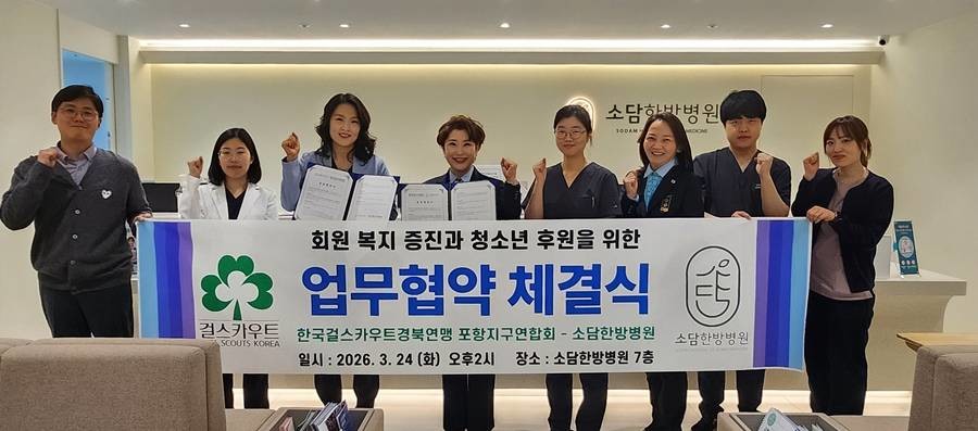 포항 소담한방병원 회의실에서 진행된 이번 협약식을 통해 포항 지역 걸스카우트 대원들은 더욱 건강하고 안전하게 스카우트 활동에 전념할 수 있도록 의료 지원 체계를 구축하게 됐다.