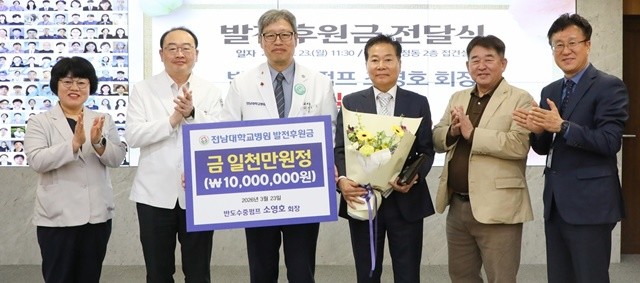 "새 병원 건립에 소중한 벽돌 얹습니다"~반도수중펌프 소영호 회장, 전남대병원에 1천만 원 쾌척