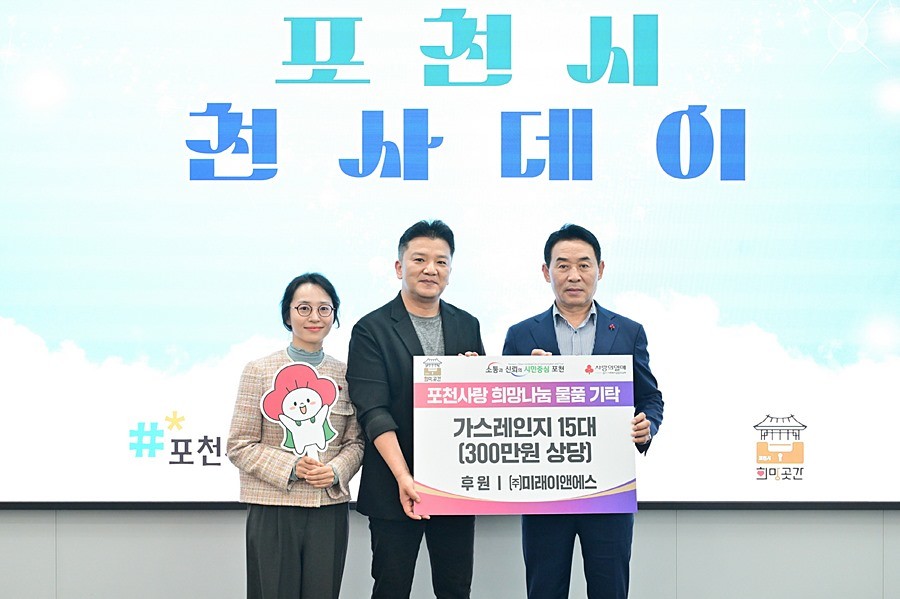 해당 성금은 포천시 이웃돕기 성금 계좌인 ‘희망곳간’에 예치해 도움이 필요한 곳에 지원할 계획이다.