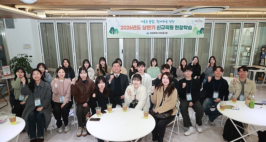인천 미추홀구(구청장 이영훈)는 지난 19일과 26일 이틀간, 신규 공무원 47명을 대상으로 구정에 대한 이해를 높이고 조직 적응을 돕기 위한 ‘현장학습 및 구청장과의 열린 대화’를 진행했다.