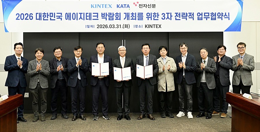 킨텍스(대표이사 이민우)는 1일, 대한에이지테크협회(회장 이욱희), 전자신문사(대표 강병준)와 ‘2026 대한민국 에이지테크 박람회’의 성공적인 개최 및 산업 육성을 위한 업무협약(MOU)을 체결했다고 밝혔다.