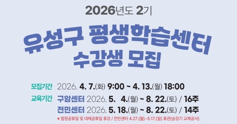 [위키트리 대전=장윤아 기자] 대전 유성구가 청년의 안정적인 자립을 지원하기 위한 맞춤형 무료 교육 프로그램을 운영한다.