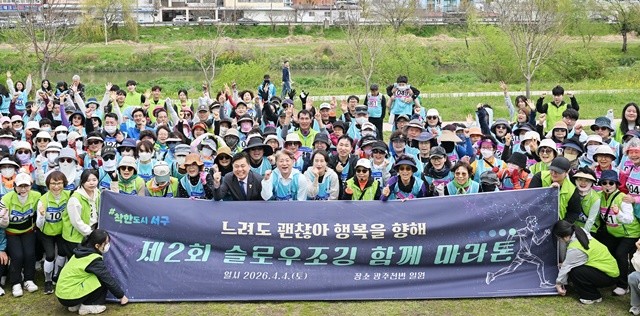 광주 서구는 지난 4일 광주천변 일원에서 ‘느려도 괜찮아, 행복을 향해 함께 걸어요’라는 주제로 ‘제2회 슬로우조깅 함께 마라톤’을 개최했다.