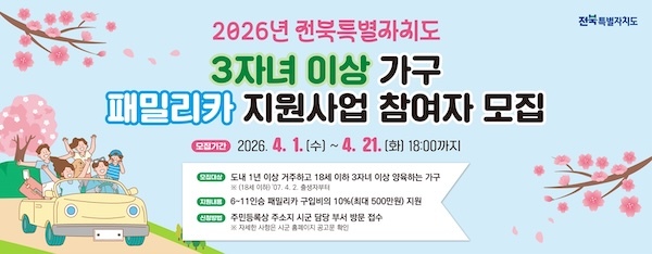 전북 정읍시와 정읍시지역활력센터가 다가오는 5월 가정의 달을 맞아, 관외 거주 가족 단위 관광객을 대상으로 1박 2일 체류형 관광 프로그램인 ‘정읍 시티스테이 올래’ 참여자 30명을 오는 10일까지 모집한다.