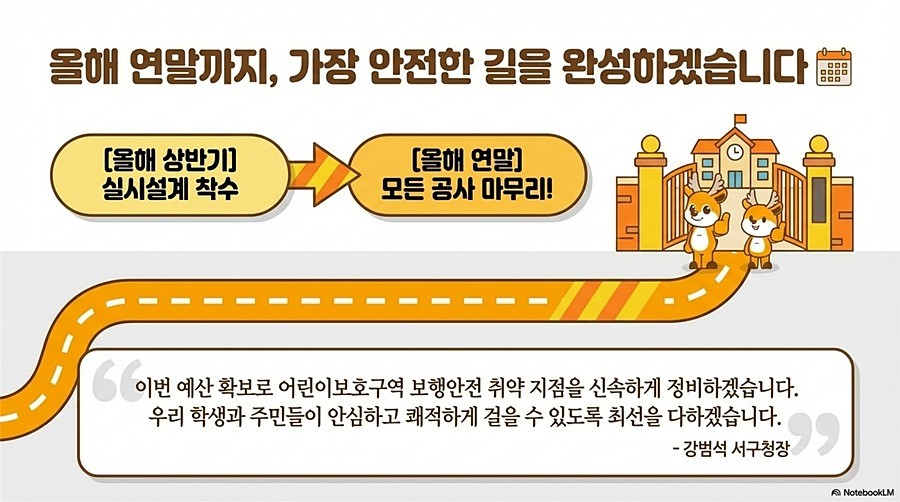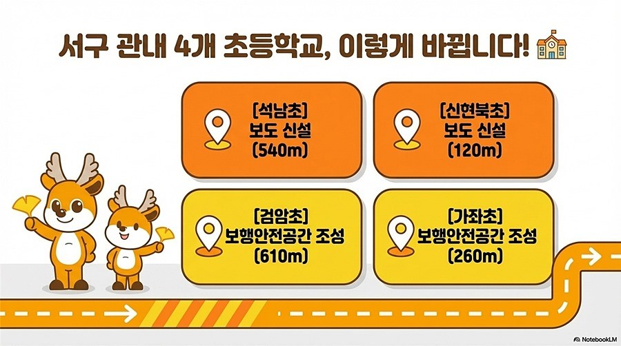서구(구청장 강범석)는 행정안전부 주관 ‘안전한 통학로 조성사업’에 최종 선정되어, 국비 특별교부세 9억 5천만 원을 확보했다고 9일 밝혔다.