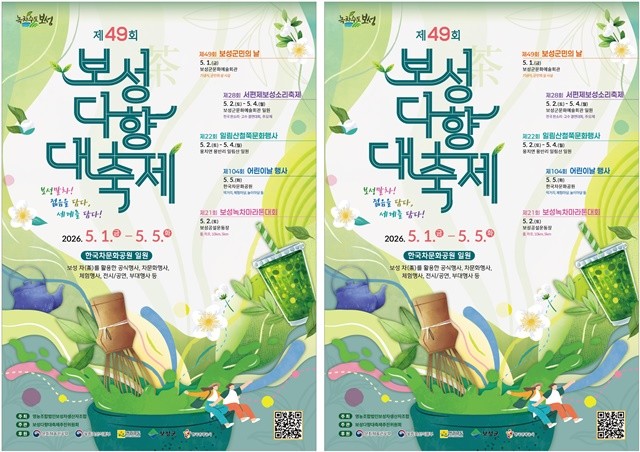 한편, 문화체육관광부 '로컬100'에 선정된 이번 축제 기간에는 보성군민의 날을 비롯해 서편제보성소리축제, 일림산철쭉문화행사, 어린이날 행사, 녹차마라톤대회 등 굵직한 메가 이벤트들이 동시다발적으로 펼쳐져 5월 봄나들이객들에게 최고의 즐거움을 선사할 예정이다.