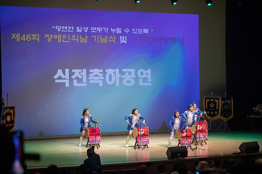 서구는 지난 15일 서구문화회관 대공연장에서 ‘당연한 일상, 모두가 누릴 수 있도록’이라는 슬로건 아래 ‘제46회 장애인의 날 기념식 및 장애인 한마당 행사’를 성황리에 개최했다고 16일 밝혔다.