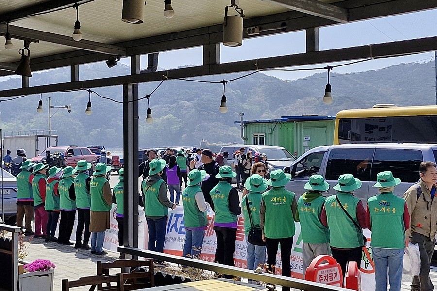 부녀회원들은 선착장에서 관광객들을 맞이하며 소중한 자연을 아끼고 보존하는 올바른 산행 문화를 당부했다.