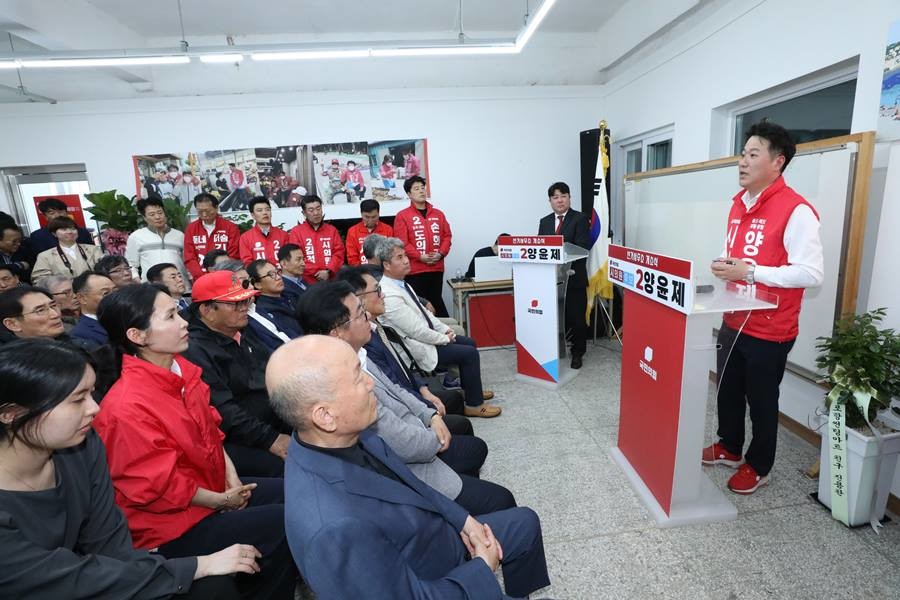 [포항=위키트리]이창형 기자=국민의힘 양윤제 포항시의원 예비후보(송도·해도·제철·청림)가 25일 포항시 남구 송도동 선거사무소에서 개소식을 열고 본격적인 선거전에 돌입했다.