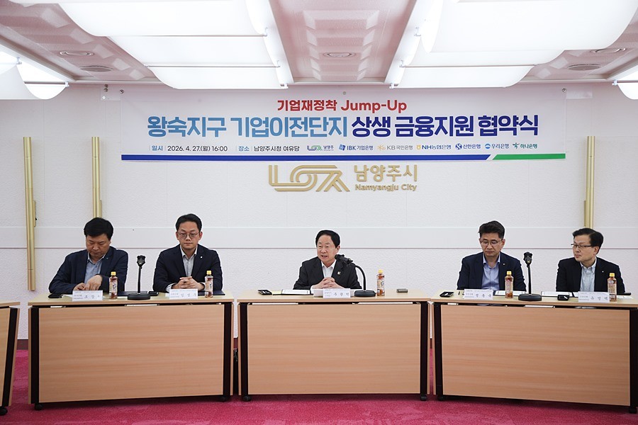 시는 27일, 토지보상금과 기업이전단지 분양가 간의 차액으로 어려움을 겪는 기업들을 지원하는 ‘왕숙신도시 기업재정착 점프업(Jump-up) 상생금융’ 업무협약을 체결했다고 밝혔다.