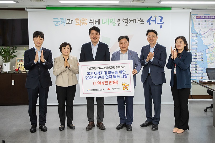 서구는 지난 27일 인천사회복지공동모금회와 함께 ‘2026년 민관협력 돌봄 지원’ 전달식을 개최하고, 모금된 기금을 도움이 필요한 이웃들에게 전달했다고 밝혔다.