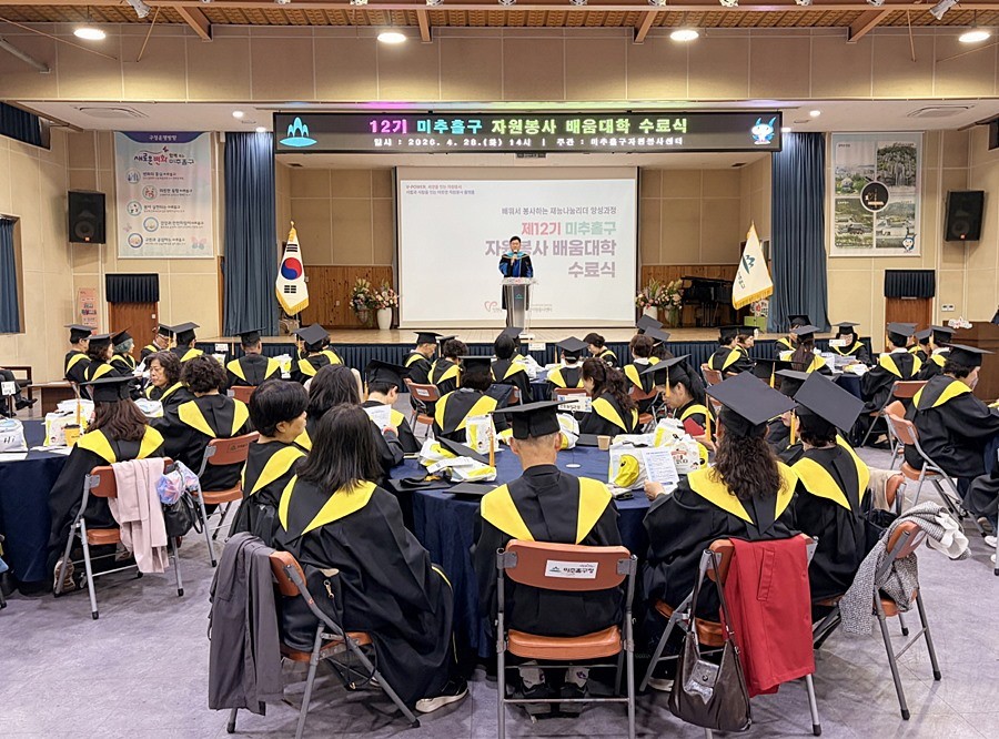 센터는 28일 미추홀구청 대회의실에서 ‘2026년 미추홀구 자원봉사 배움 대학 수료식’을 열고, 전문 교육 과정을 마친 수료생들을 격려했다.