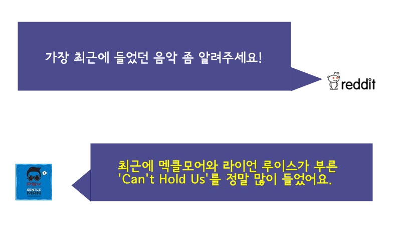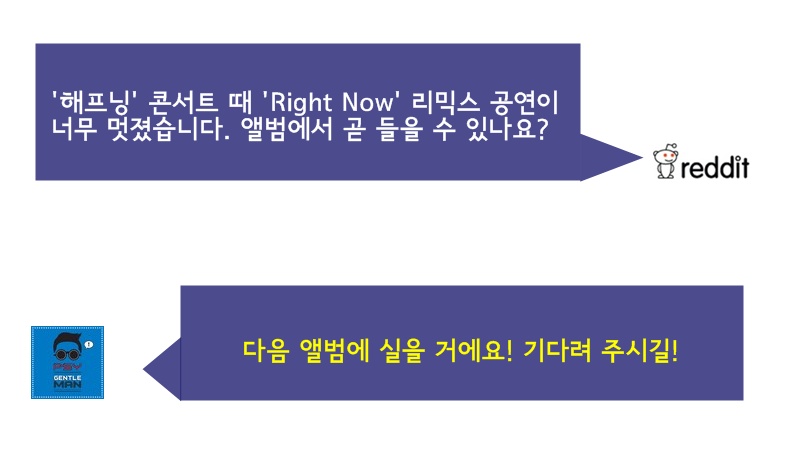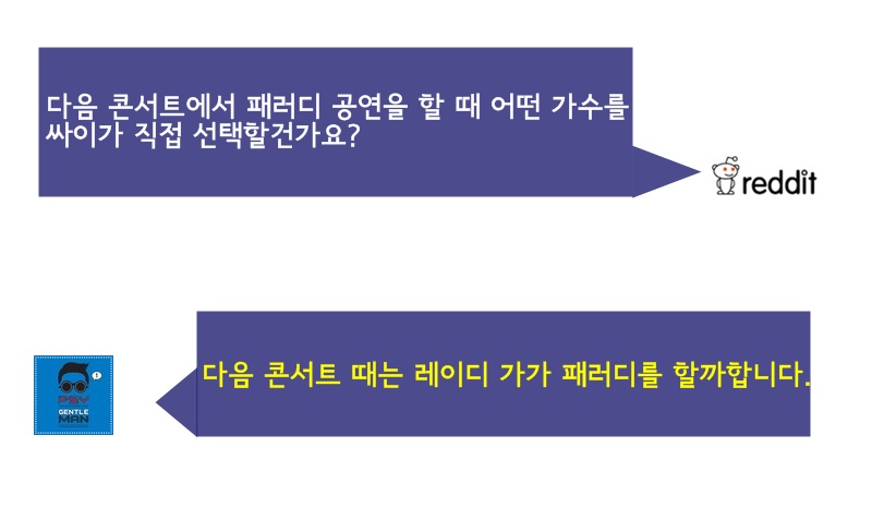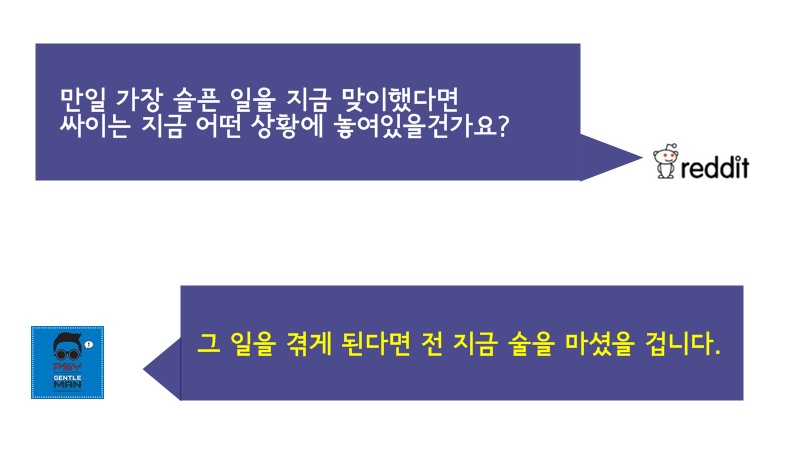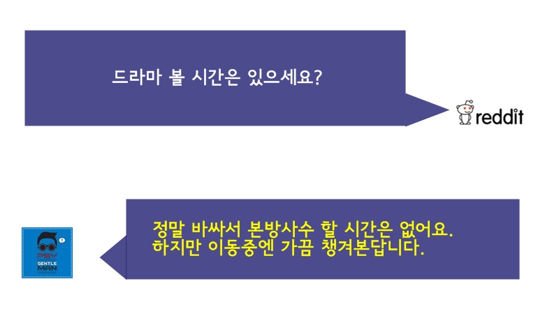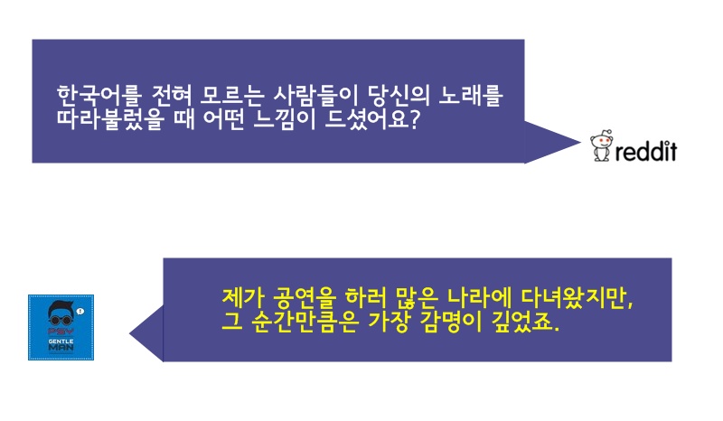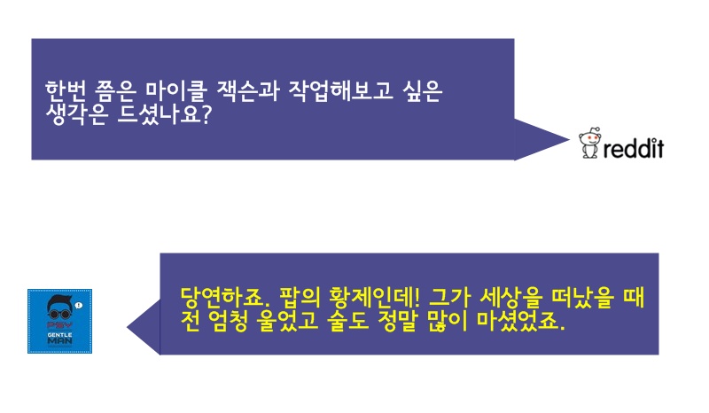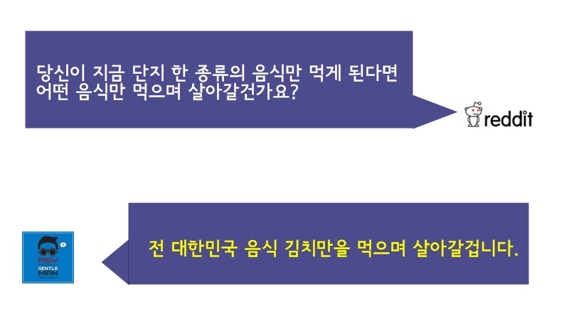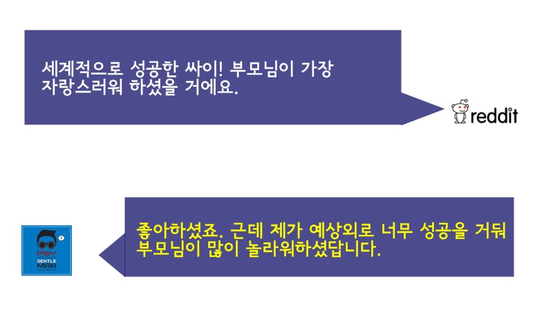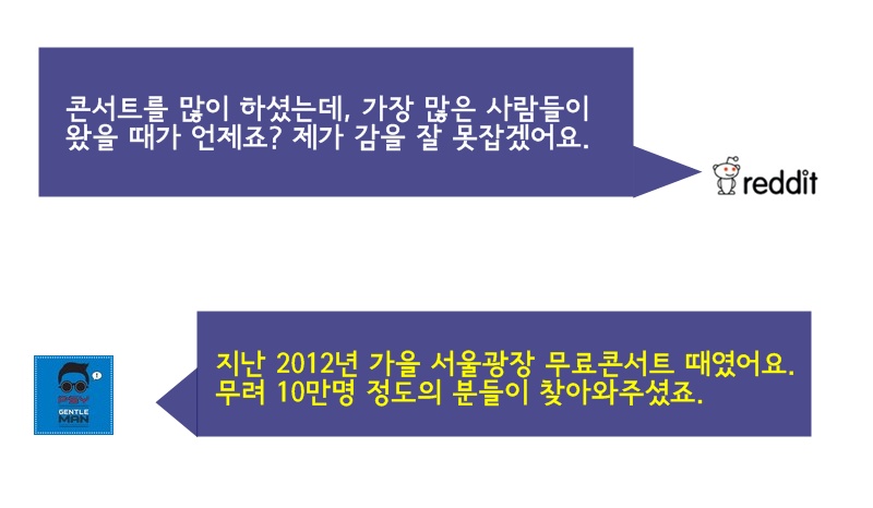 싸이와 레딧 이용자간 나눈 대화 중 10개를 선택해봤습니다.