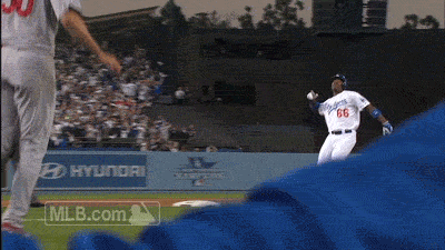 3루타를 터뜨리고 두 손 높히 환호하는 야시엘 푸이그(@YasielPuig)의 모습을 다저스가 움짤로 만들어 텀블러 계정으로 전했습니다.