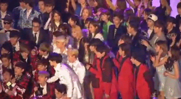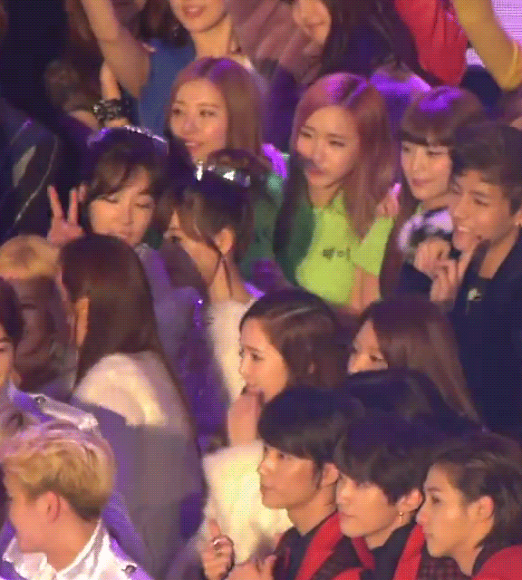 크레용팝 멤버 웨이가 소녀시대 써니 등을 밀쳤다는 의혹이 제기된 부분을 움짤로 만들었다. 이 움짤은 지난 23일 방송된 '제23회 하이원 서울가요대상' 시상식 엔딩 중 한 부분이다.