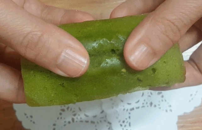녹차 향이 강하게 난다. 한 입 먹었을 때 식감은 카스텔라 보다는 힘 있고, 일반 빵보다는 부드럽다. 녹차 맛을 싫어하는 사람이라면 먹기 거북할 수도 있겠다. 향이 생각보다 강하다.
