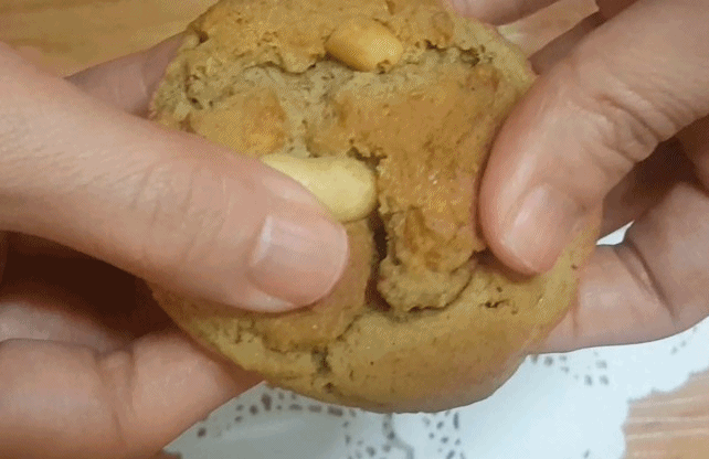 쿠키가 단단하다. 외관상 수분이 없어 퍽퍽할 것 같았는데 씹으니 촉촉했다. 기본적으로 단 맛이 났다. 땅콩이 들어 있어 고소하기도 하다. 일반적으로 카페에서 사 먹는 쿠키 맛과 비슷했다.