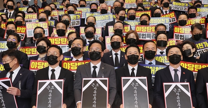 나 원내대표는 "패스트트랙은 전 과정이 불법"이라면서 "불법 사보임, 불법 의결의 고리를 끊어야만 선거법·검경수사권 조정안을 제대로 합의 처리할 수 있다"고 그 이유를 설명했다.