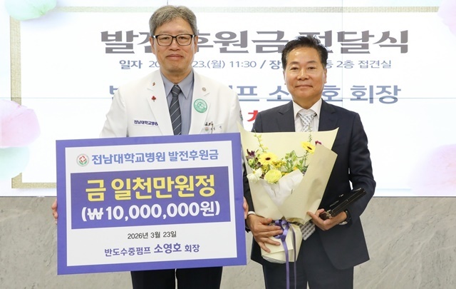 "새 병원 건립에 소중한 벽돌 얹습니다"~반도수중펌프 소영호 회장, 전남대병원에 1천만 원 쾌척