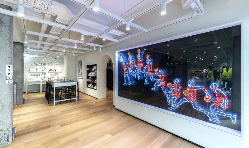 지상 1층은 디지털 스크린과 조던 컬렉션 디스플레이를 통해 조던의 정체성을 시각적으로 담은 ‘플렉스 스페이스(Flex Space)’가 설치돼 조던 신제품 런칭 정보 및 매장 이벤트 등 방문객에게 유용한 정보를 제공한다.