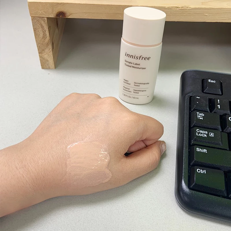 이니스프리 심플라벨 틴티드 모이스처라이저는 자외선 차단제가 함유되어 있고, 피부 톤 보정이 되어 파데 프리 메이크업이 가능하다. 요즘은 거의 마스크를 쓰고 다니기 때문에 파운데이션이나 쿠션이 부담스러운 이에게 위 제품 사용하는 것을 적극 권장한다.