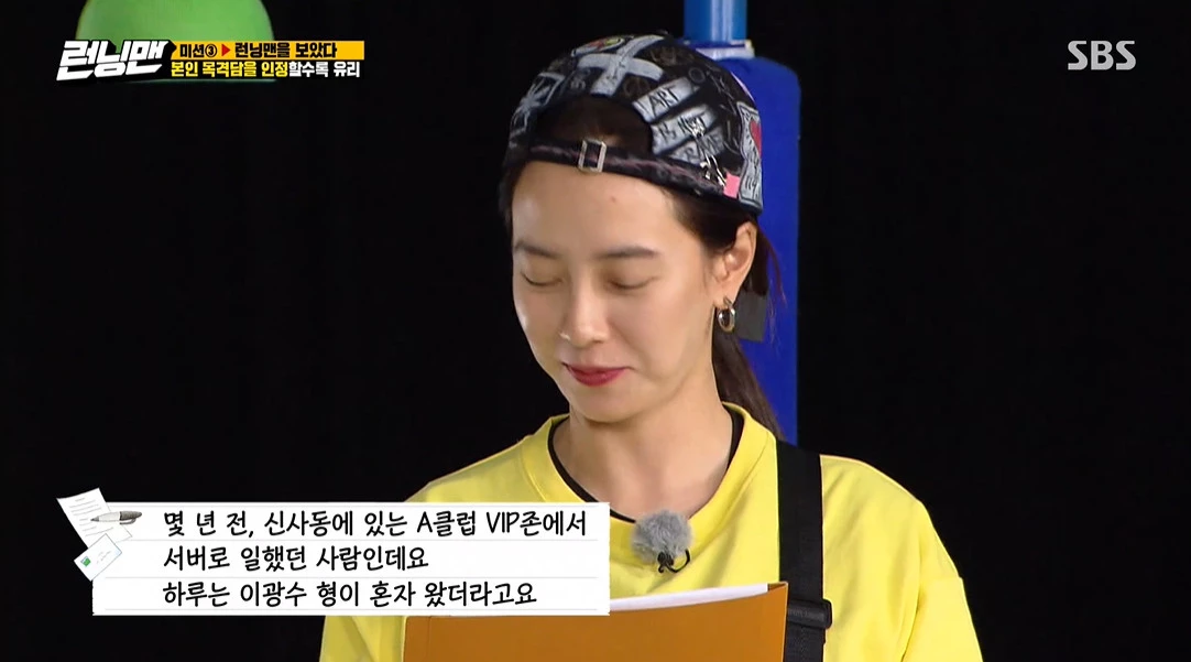 이날 송지효 씨는 "몇 년 전에 신사동에 있는 A 클럽 VIP존에서 서버로 일했던 사람"이라며 이 씨 강남 클럽 목격담을 읽기 시작했다.