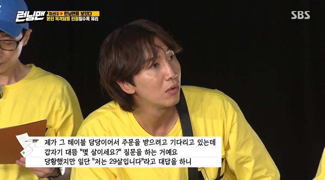 송지효 씨는 "이광수 형이 혼자 왔더라. 내가 그 테이블 담당이어서 주문을 받으려고 기다리고 있는데 대뜸 몇살이냐고 묻더라"고 전했다.