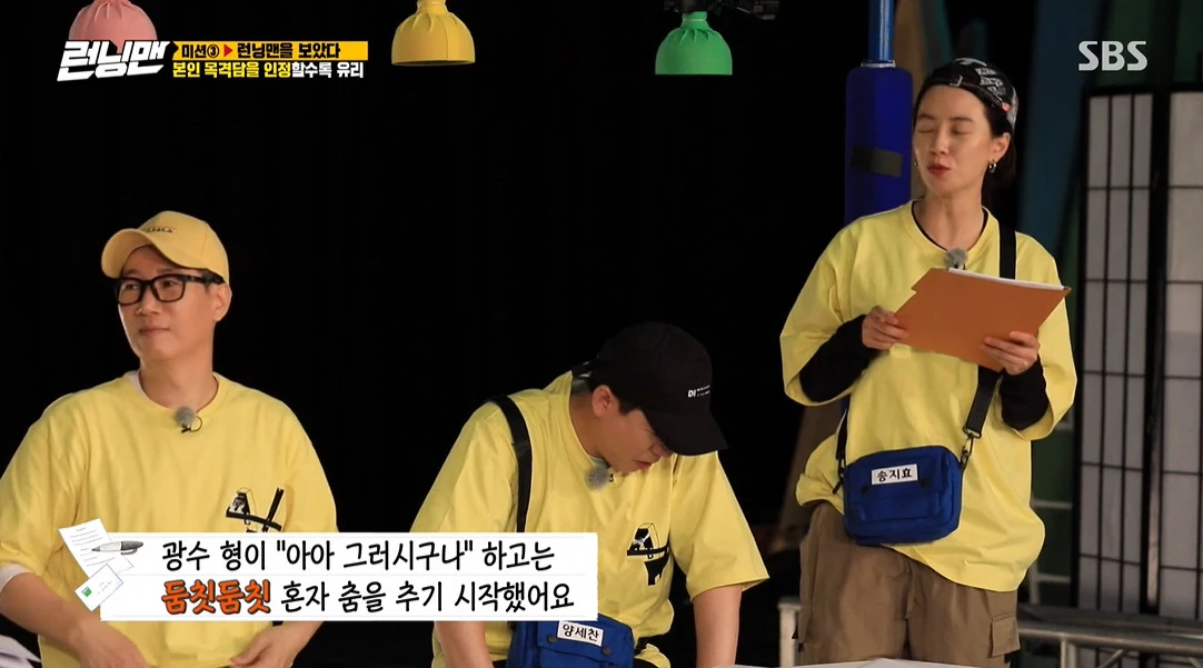 지난 21일 SBS '런닝맨'에서는 멤버들이 목격담 인정 미션을 수행하는 모습이 그려졌다.