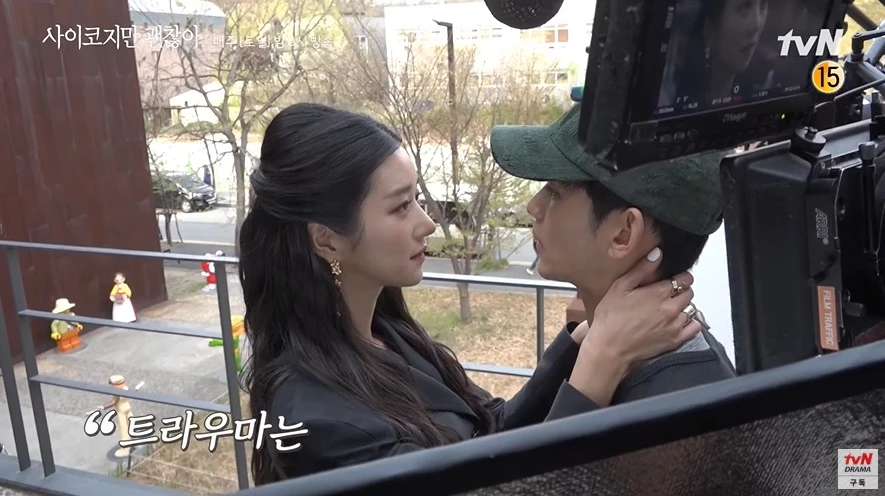 23일 tvN '사이코지만 괜찮아' 팀은 유튜브 채널에 비하인드 영상을 게재했다. 해당 영상에는 '사이코지만 괜찮아' 2화 촬영 당시 현장이 담겼다.