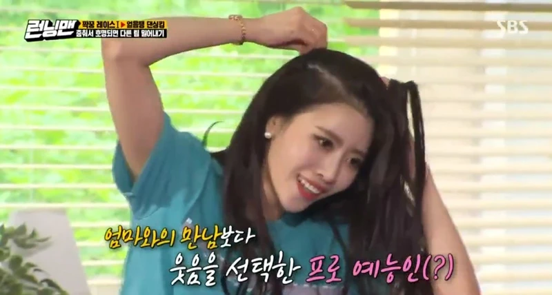 '런닝맨'에 출연한 러블리즈 미주가 머리를 쥐어뜯는 댄스(?)를 선보였다.