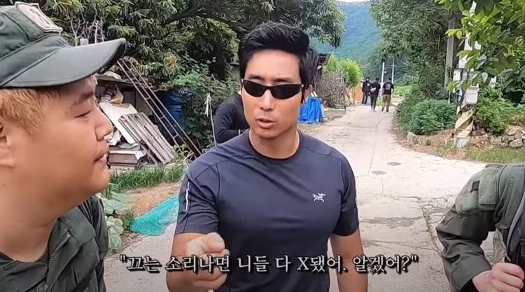 그는 "여기 벌 되게 많다. 알겠어? 끄는 소리 나면 너네 다 죽는다. 지금은 끌지 마 소리 나니깐. 악으로 깡으로 들것 들고 100m 조깅해 알겠어?"라고 말했다.