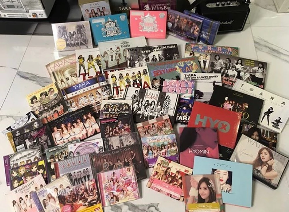 사진 속엔 환하게 웃고 있는 효민과 이제까지 티아라가 발표한 모든 앨범들이 공개됐다.