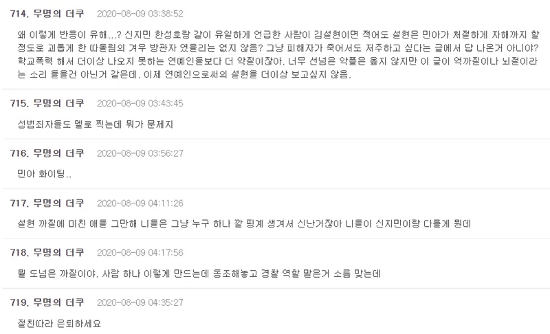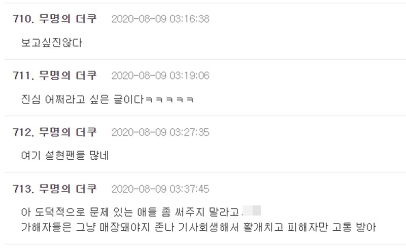 일각에서는 "공식 입장이 나오지 않은 가운데 이정도로 비난하는 건 도를 넘었다"는 반응을 보였다.