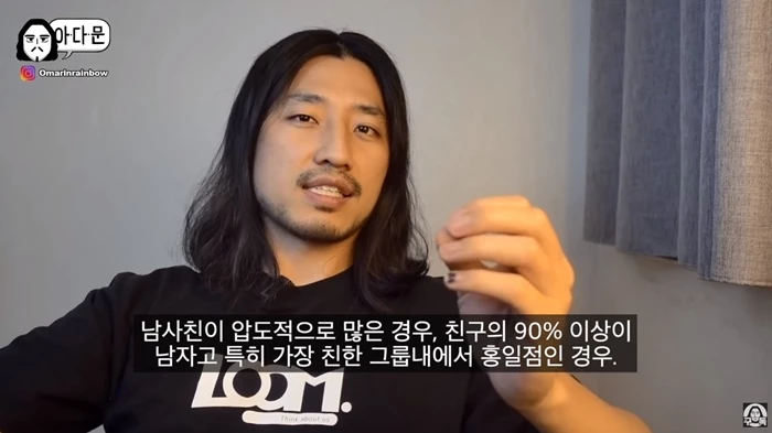 해당 영상 주제는 바로 "남사친밖에 없는 여자"였다. 오마르의 삶은 "자기는 털털해서 여자애들이 불편하다고 말하는 여자, 남사친밖에 없는 여자. 당신의 성별이 남자건 여자건 상관없습니다. 거르세요"라고 단호하게 말했다.